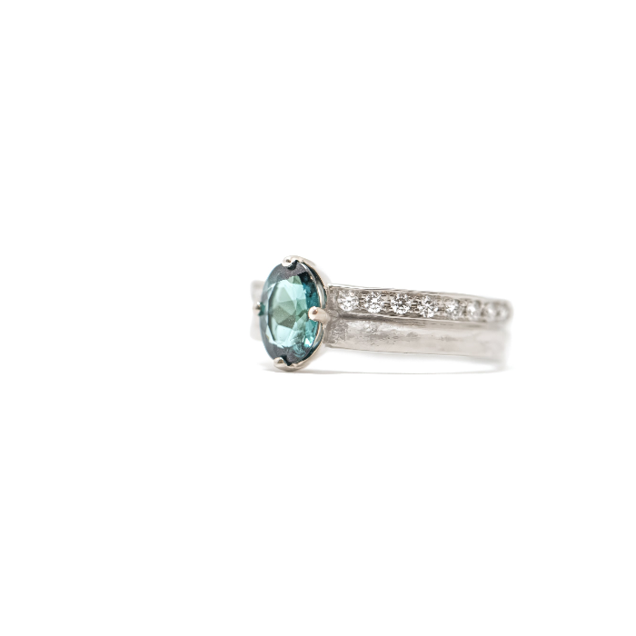 Our Escarpment ring inspired by the Horizon looking over Georgian bay. Featuring texture and a shoreline of 0.24cttw Canadian Diamonds (SI1,G)