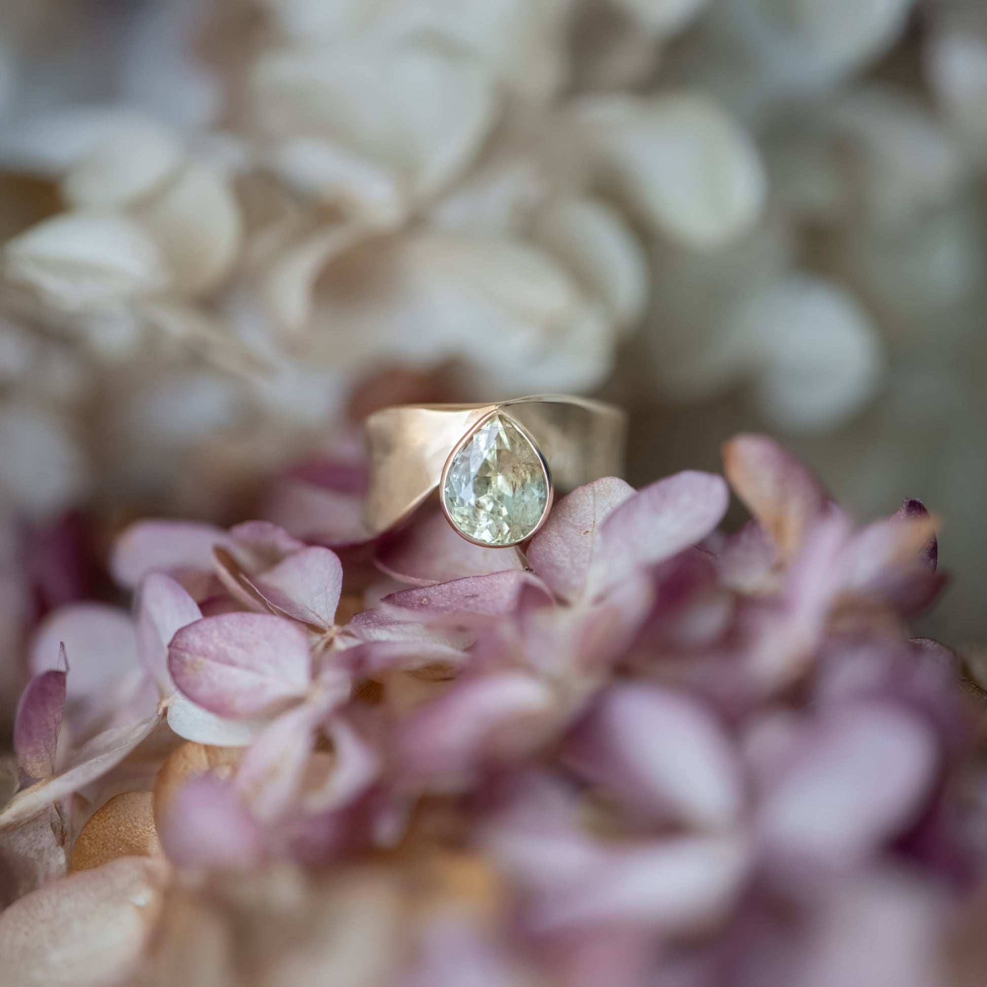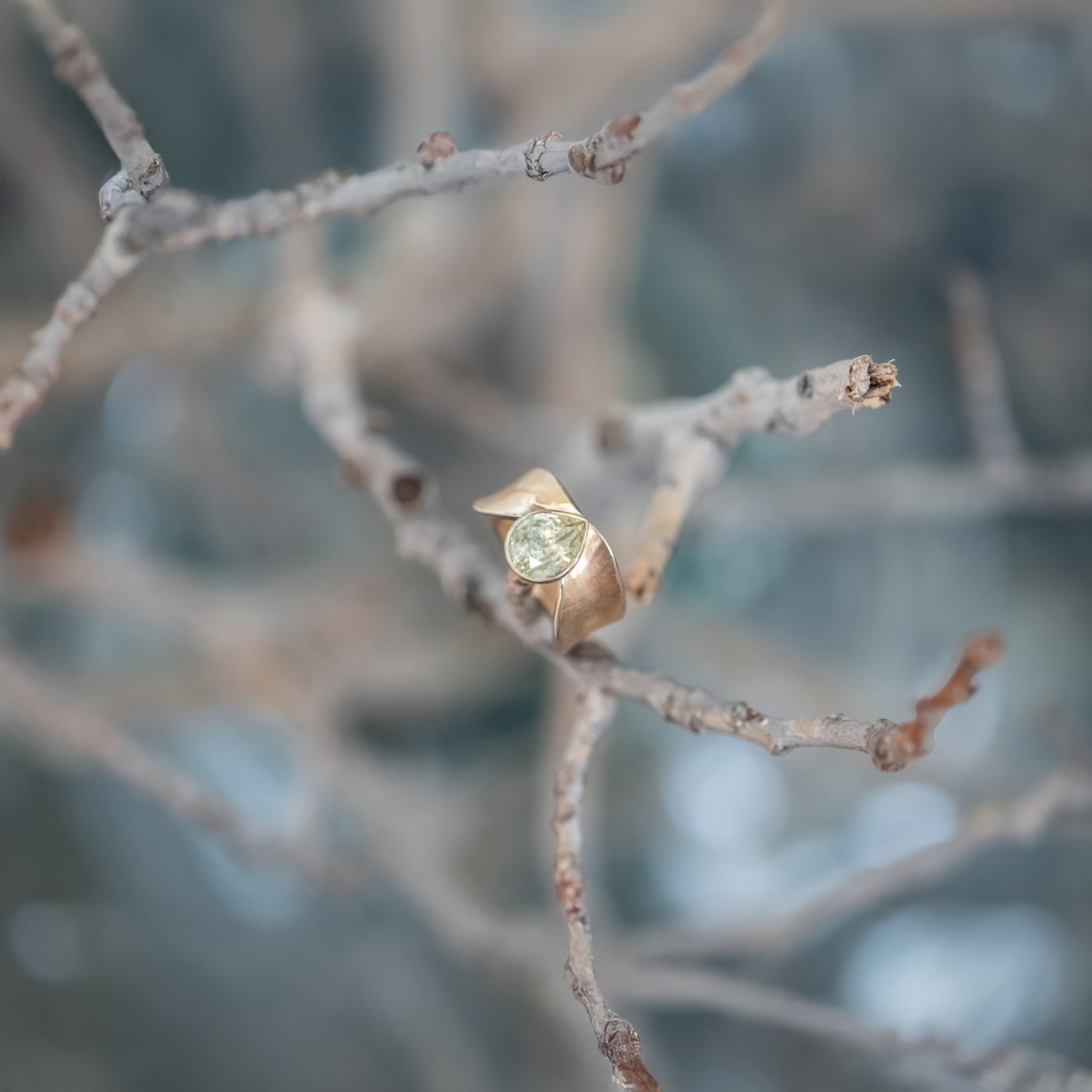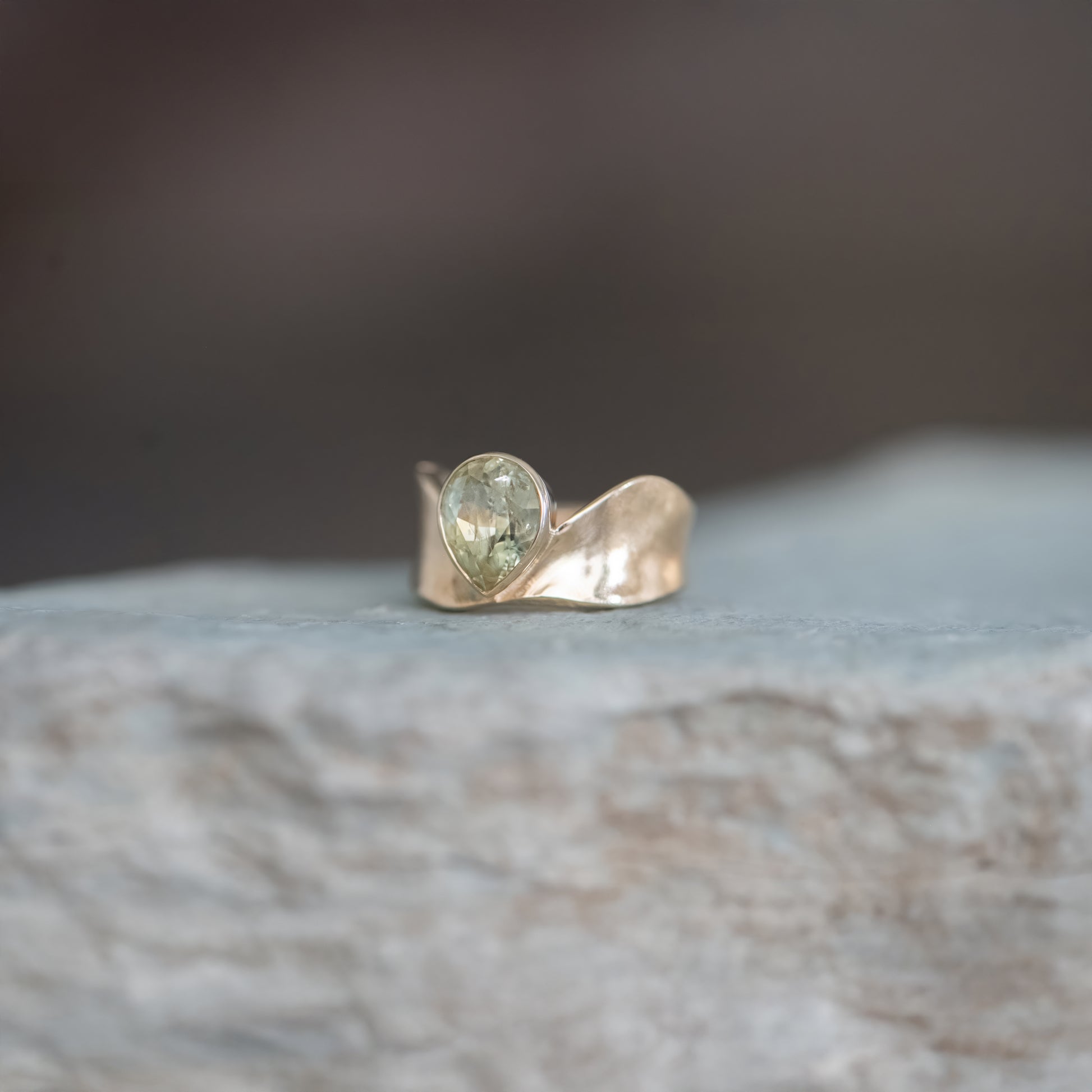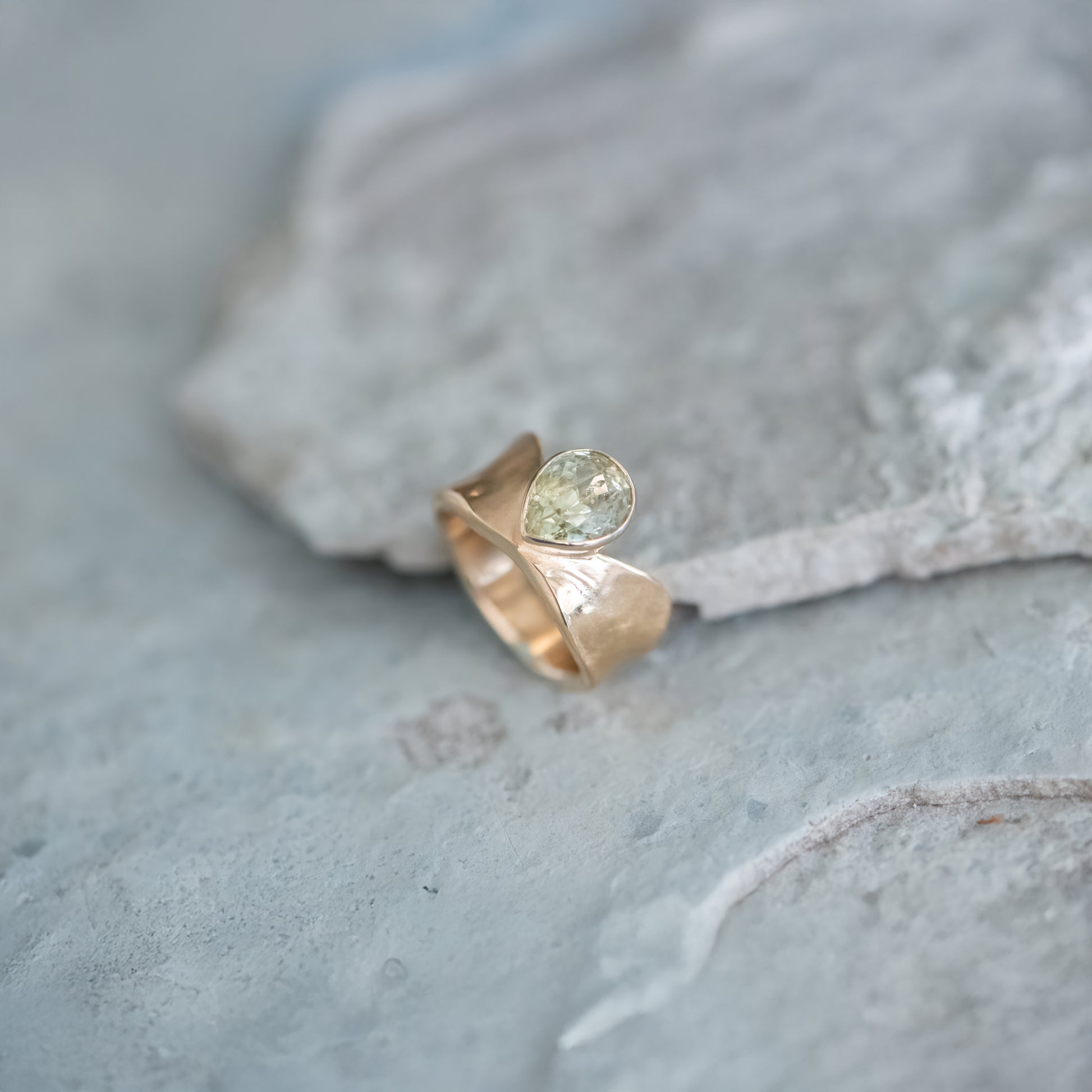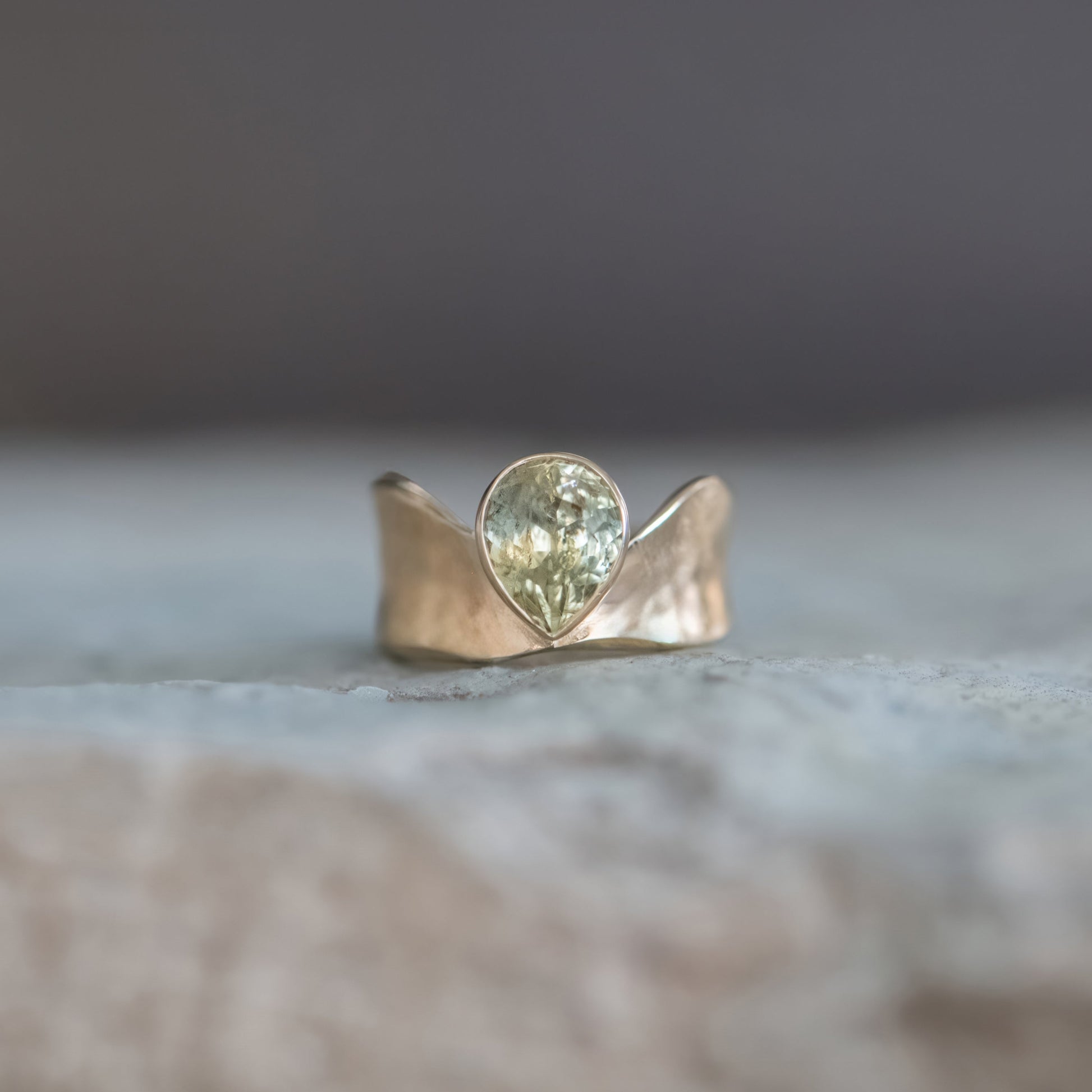 Featuring a 2.95ct Golden Montana Sapphire set in 10k yellow gold with our Placid texture and high polished edges