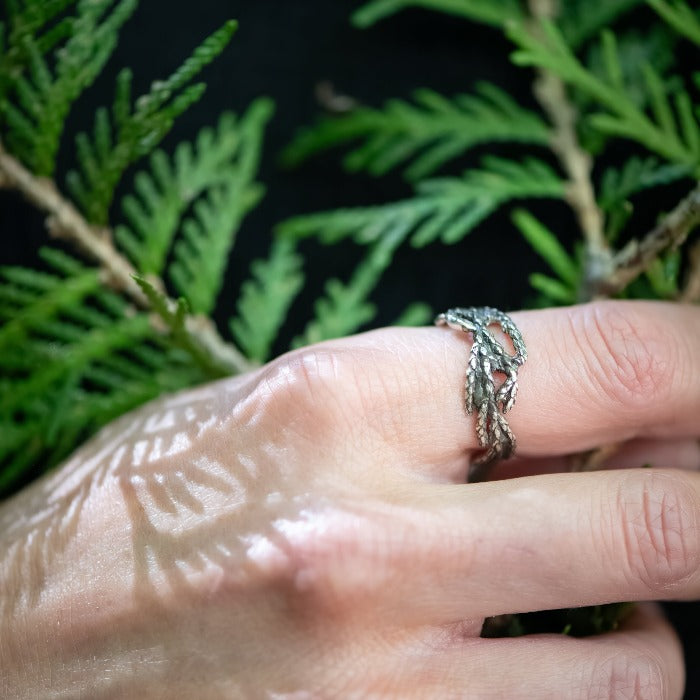 From our Nature's Impressions Collection, our Cypress ring is crafted to replicate the delicate form of a Cypress leaf found in the heart of nature. The tiny details and intricate details are featured on the surface.